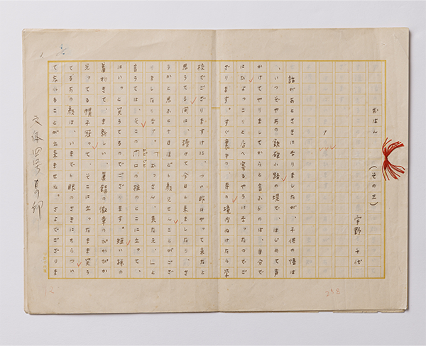 前期展では、宇野の岩国での少女時代から、「おはん」の連載が始まる50歳ごろまでの資料を中心に展示します。